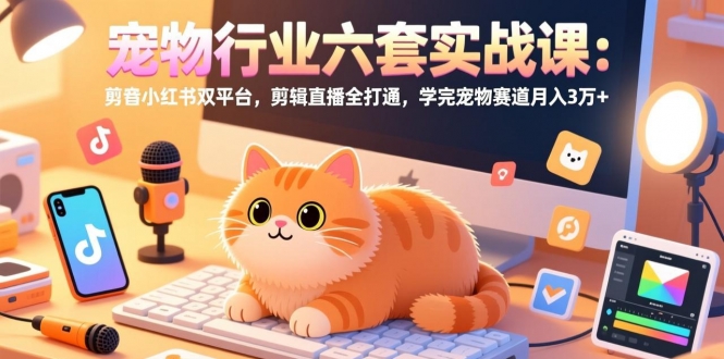 • (17410期)宠物行业六套实战课:抖音小红书双平台,剪辑直播全打通,学完