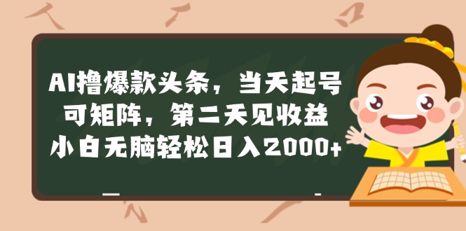 [虚拟项目] (12140期)AI撸爆款头条,当天起号,可矩阵,第二天见收益,小白无脑轻松日入2000+ |